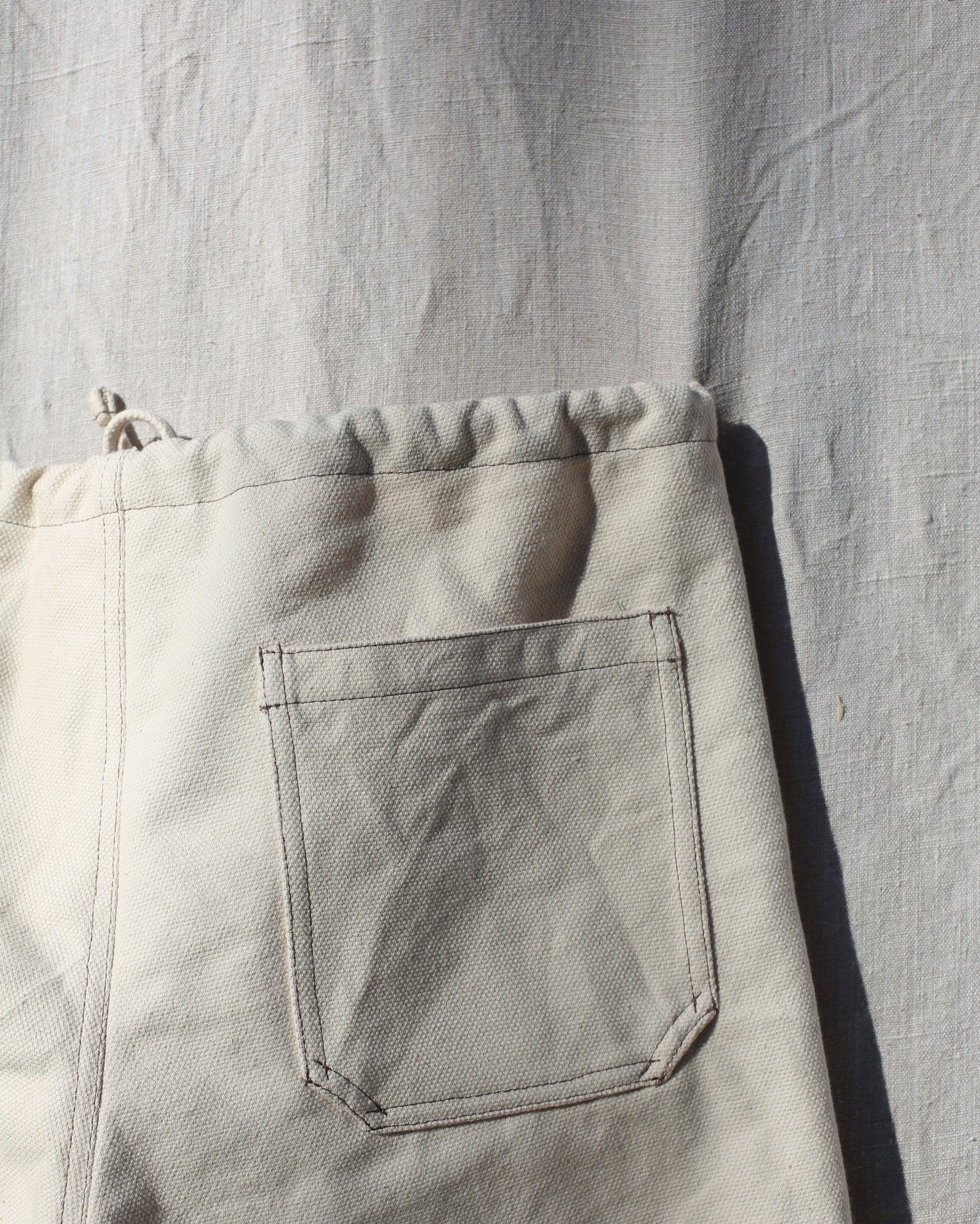 The style is mid rise with a tie waist and concealed button fly. All French seams with double stitch in high resistant thread and reinforced knees for extra hard wearing. The top button hole in the thickest part is hand stitched for strength.